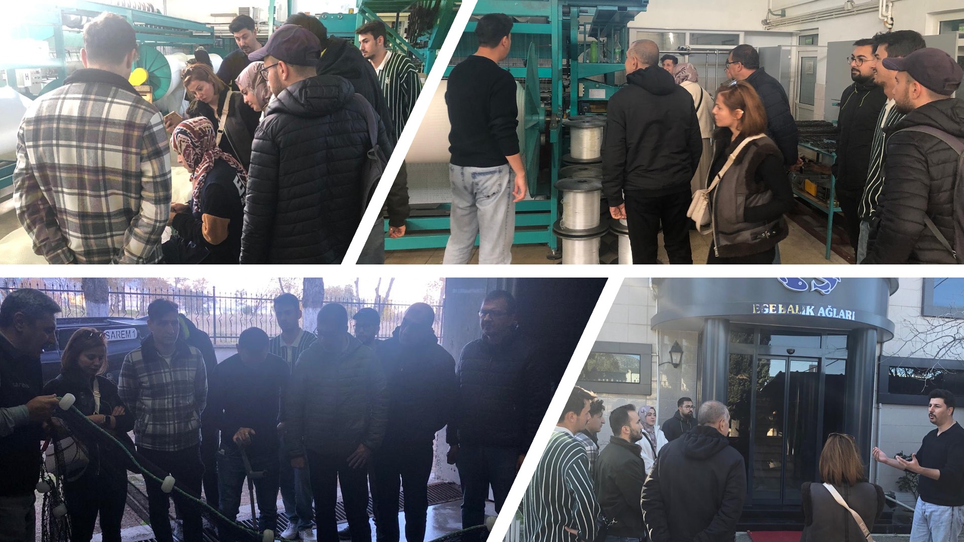 Fakültemiz öğretim üyesi Doç. Dr. Mehmet CİLBİZ tarafından verilelen "Ağ Materyalleri ve Ağ Yapım Teknikleri" dersi kapsamında 17 Kasım 2025 tarihinde teknik gezi gerçekleştirilmiştir. Bu kapsamda, özellikle kafes ağları arzında ülkemizin önemli üreticilerinden birisi olan Ege Balık Ağları Fabrikasına ve iç su kaynaklarımızdaki başarılı bilimsel çalışmalarıyla ön plana çıkan Eğirdir Su Ürünleri Araştırma Enstitüsü Müdürlüğü’ne ziyarette bulunulmuştur.