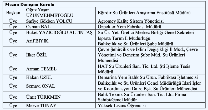 - Su ürünleri özel sektör temsilcileri ve Birim Danışma Kurulu Üyeleri